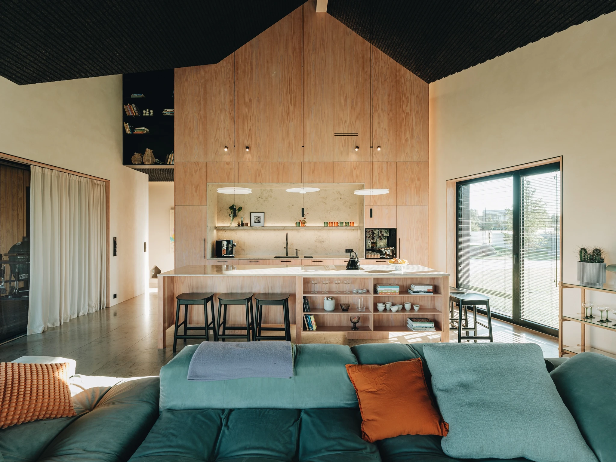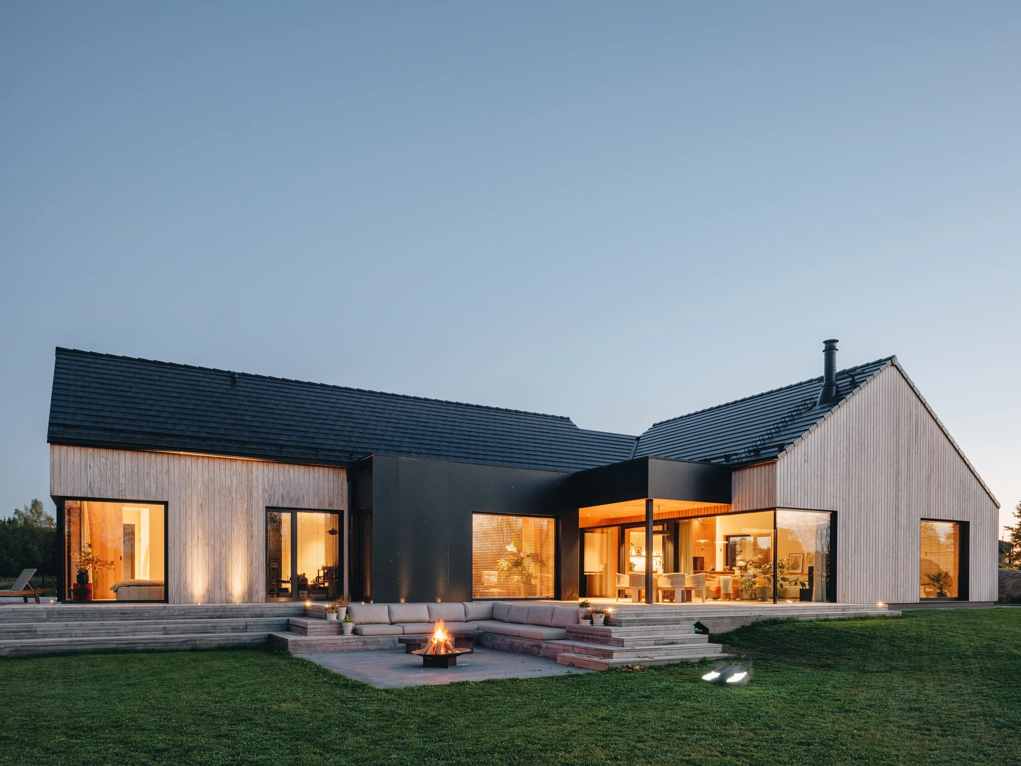 Väikeasulas paiknev uuselamu sobitub hästi maastikku ja loodusesse. Maja sisemuses jätkub naturaalne joon: puitkilpidest laed ja lubipahtliga viimistletud seinad loovad koduse tunde.