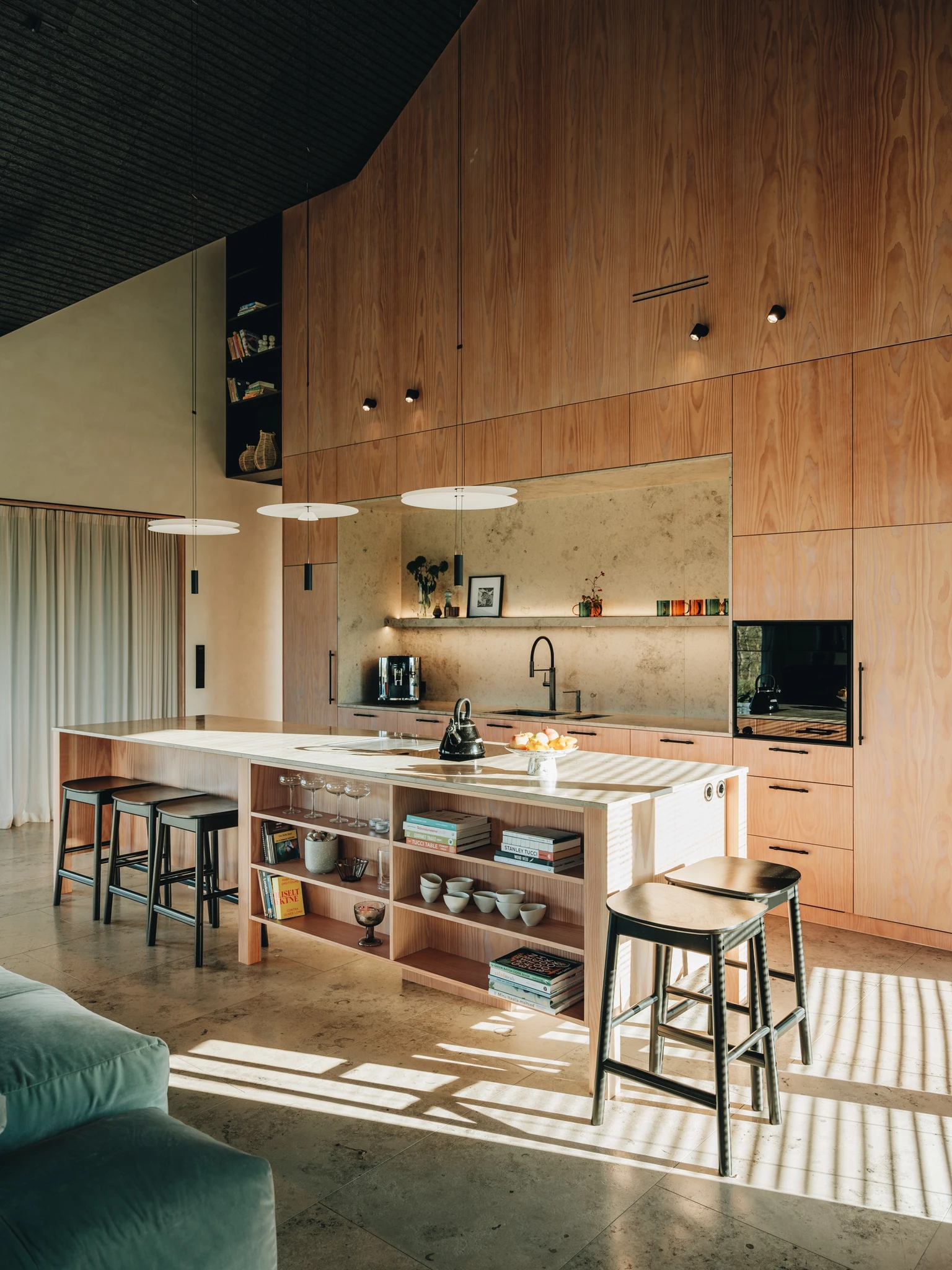 Värskelt viimistletud pinnad on mehaaniliselt õrnad. Väldi kolimise käigus või mööbli paikapanekul pindade vigastamist. Looduslike viimistlusmaterjalide paranduskohad jäävad enamasti muust pinnast erinevad, just seepärast on äsjakrohvitud seinte ja lagede hoidmine oluline.Arhitektuur: Live Arhitects (Linda Veski-Olsen)